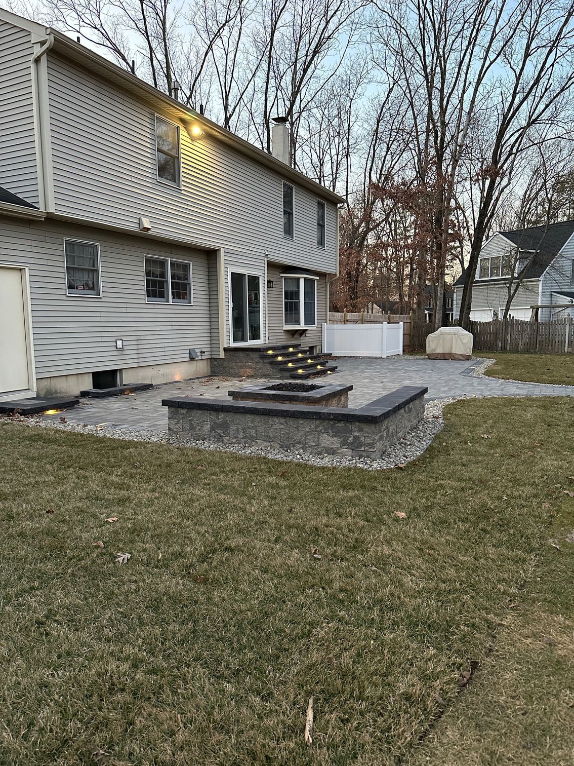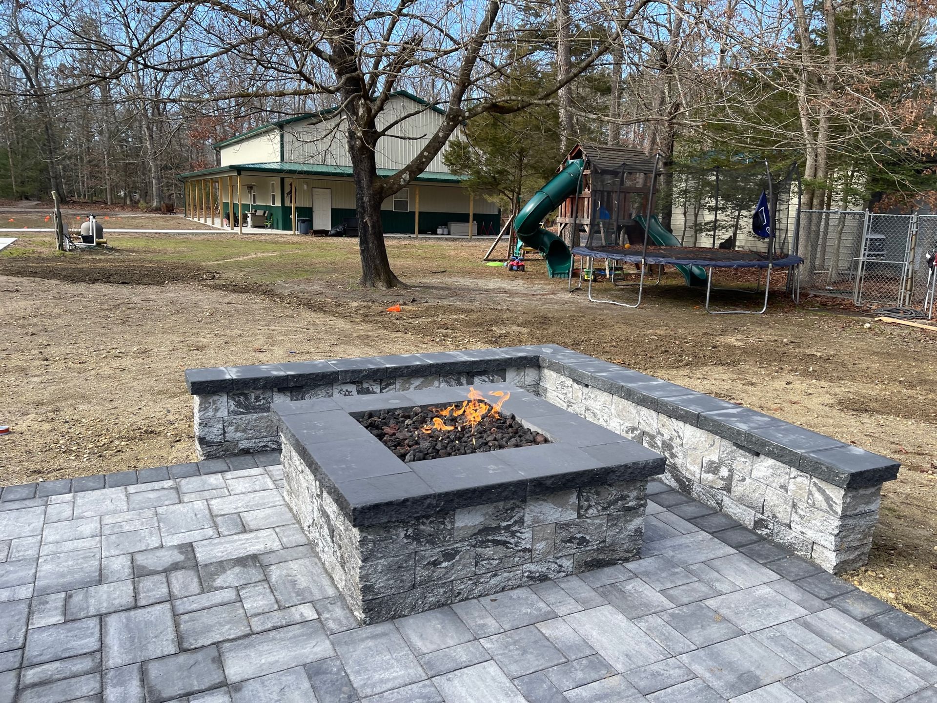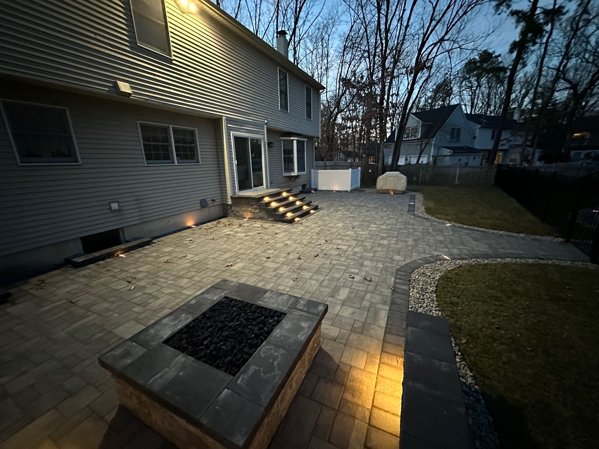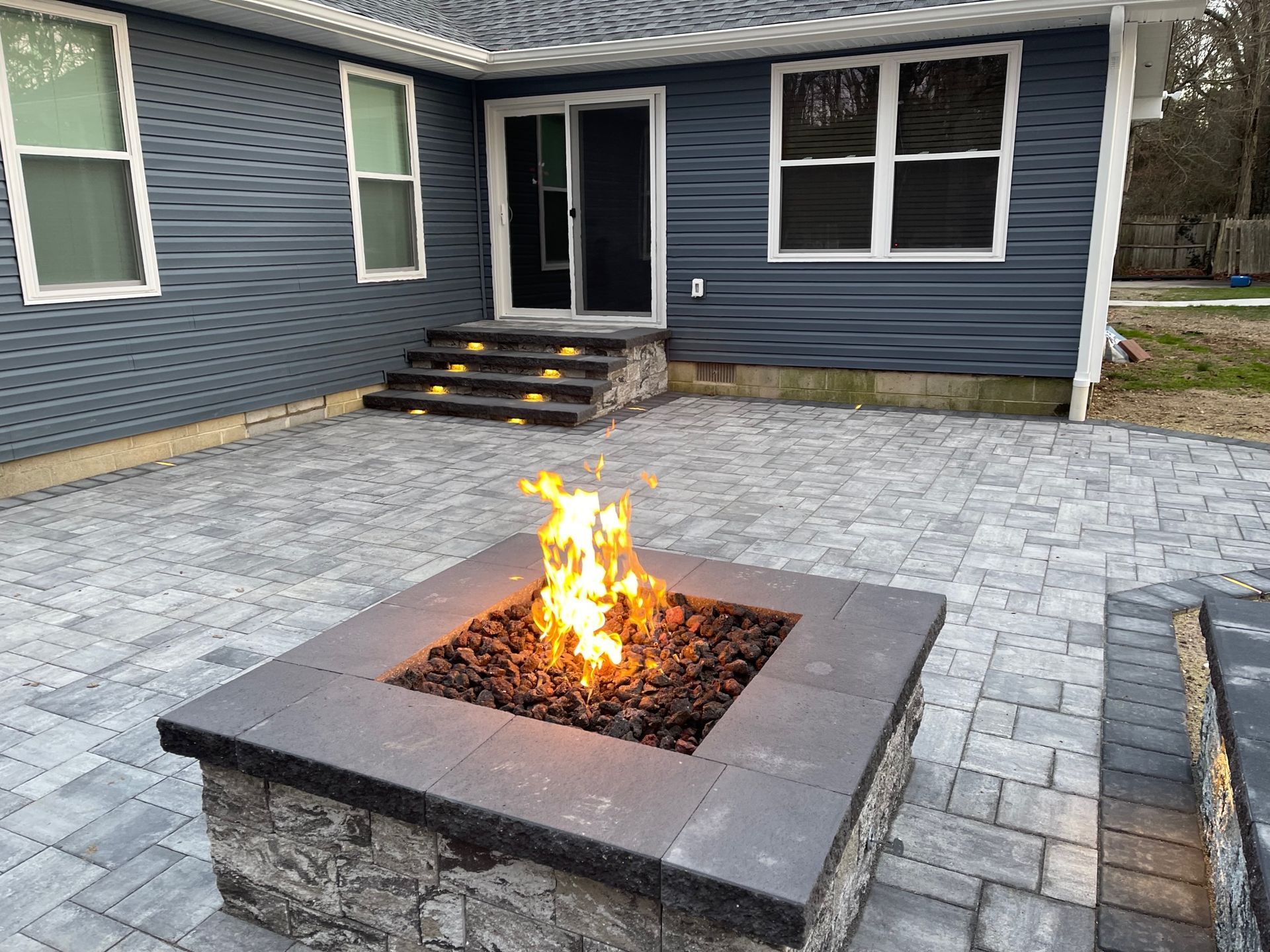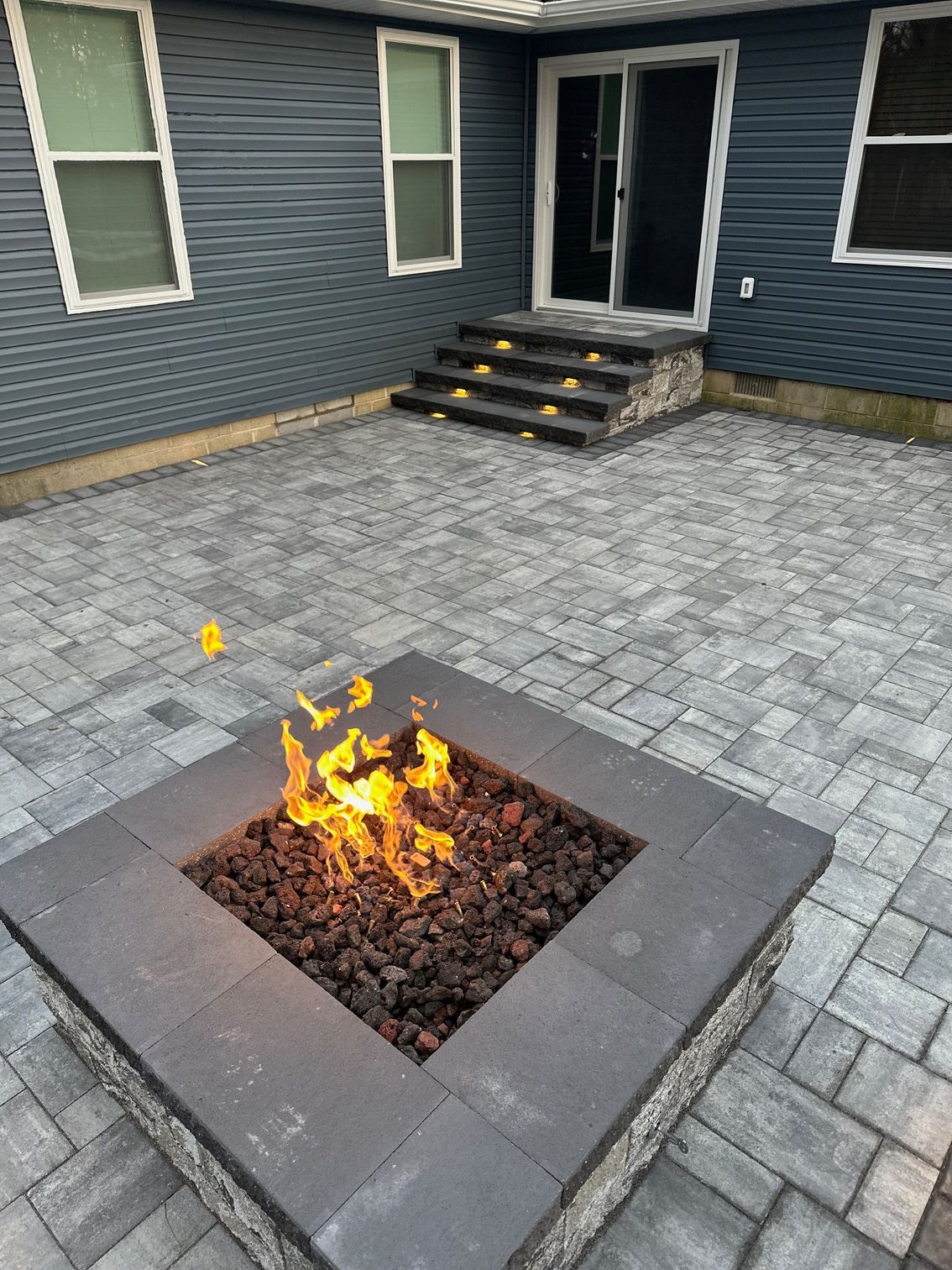 Beautiful outdoor paradise Paver patio LED Lights, Sod firepit and outdoor kitchen