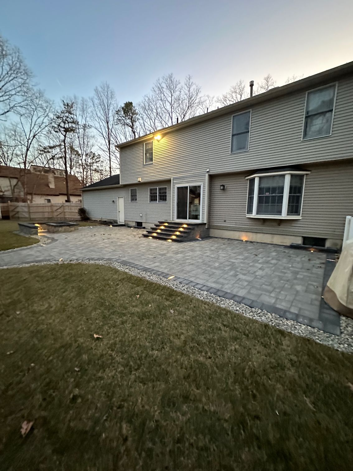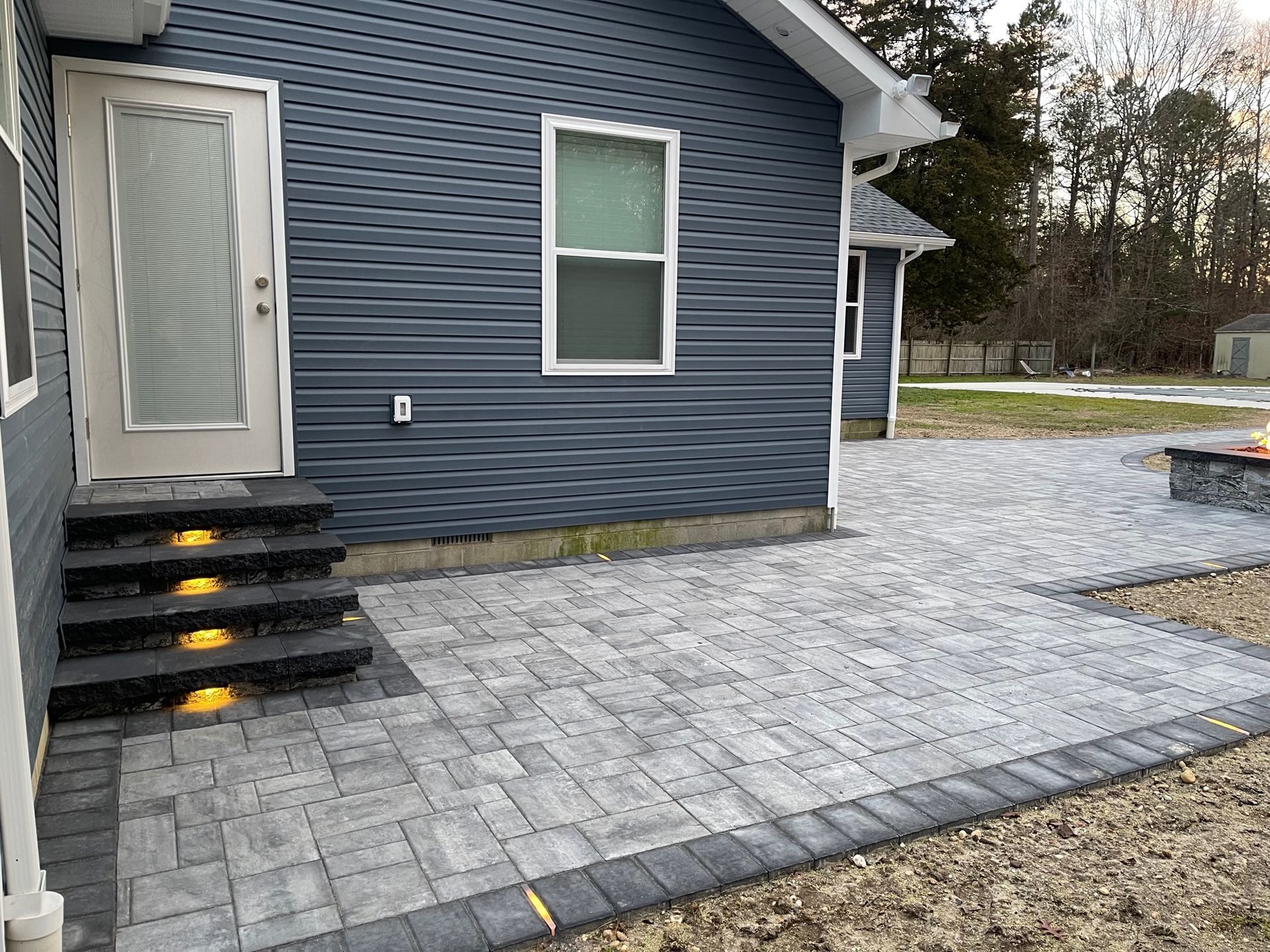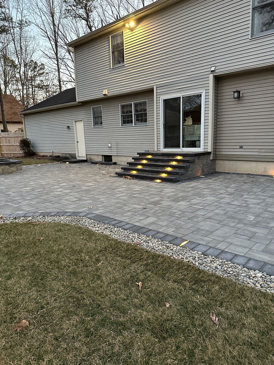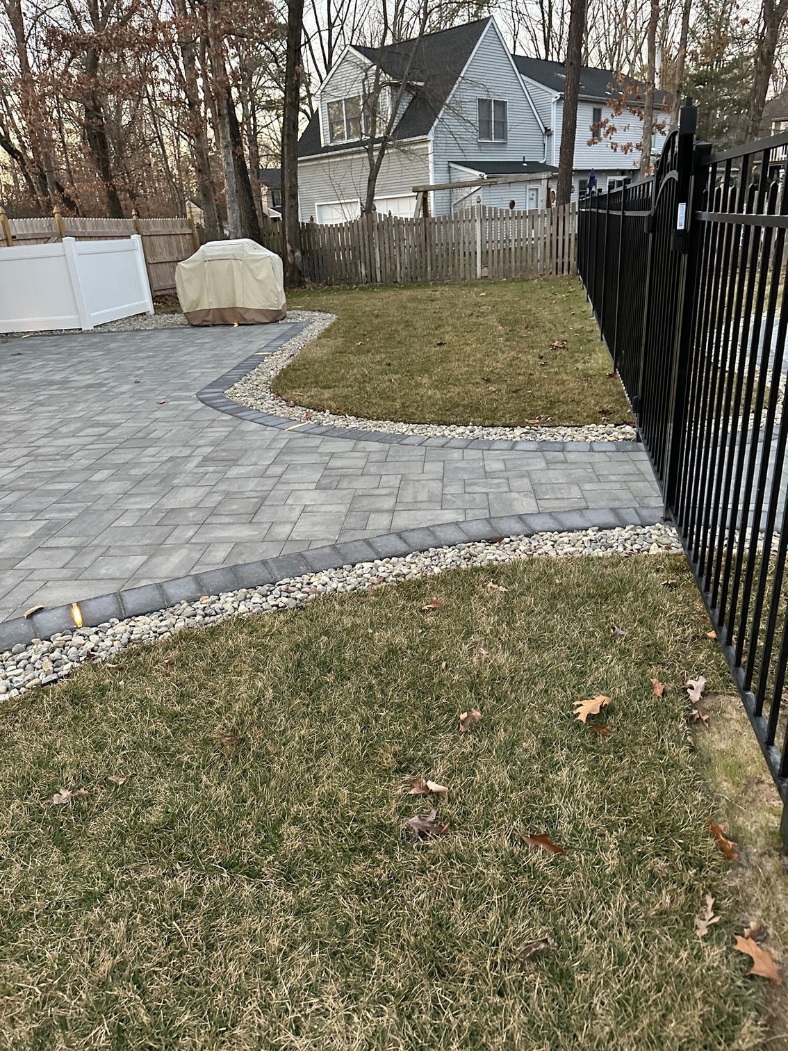 Beautiful outdoor paradise Paver patio LED Lights, Sod firepit and outdoor kitchen