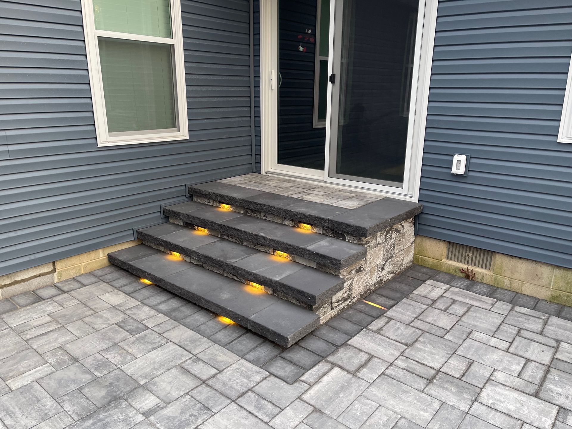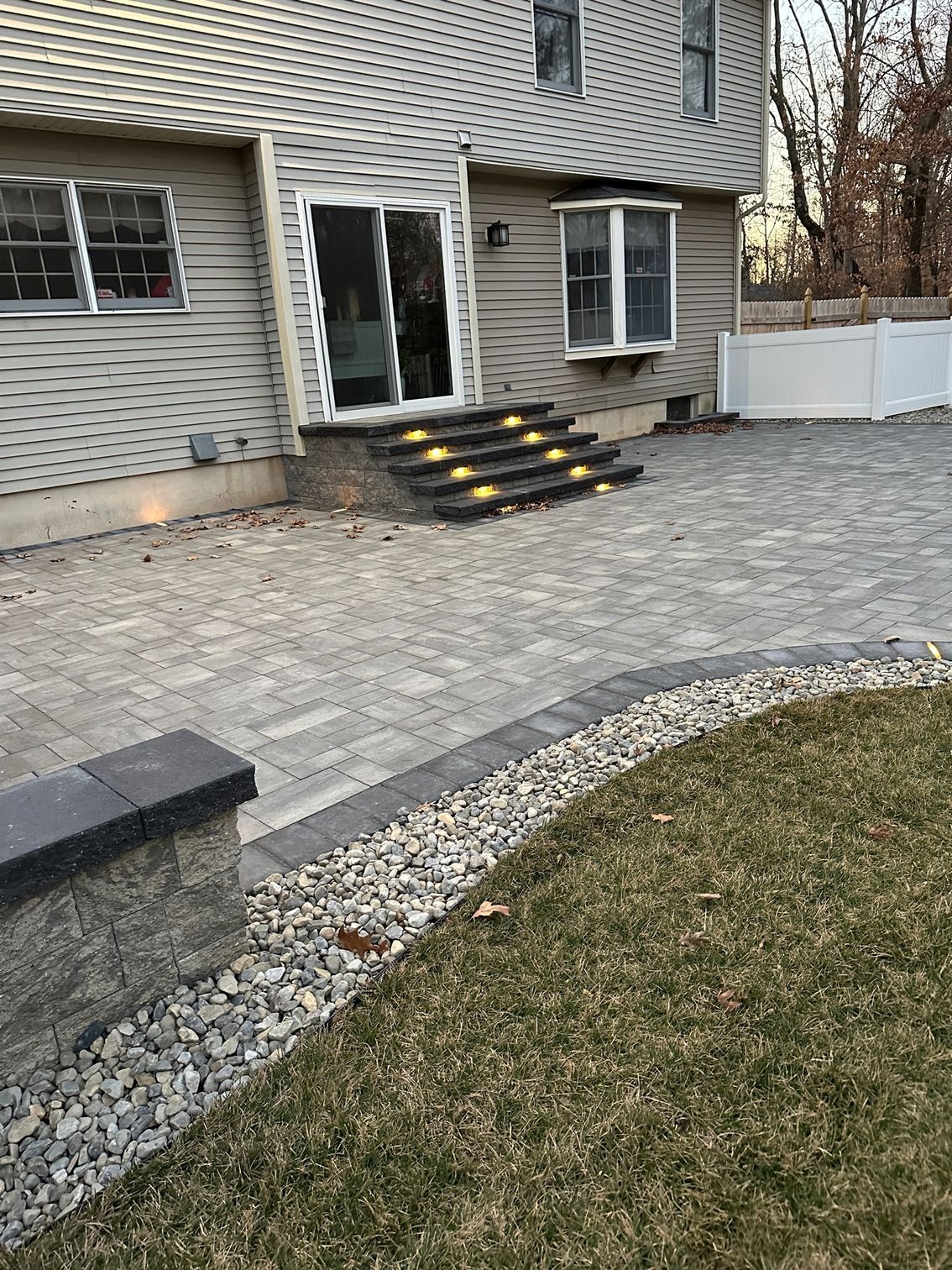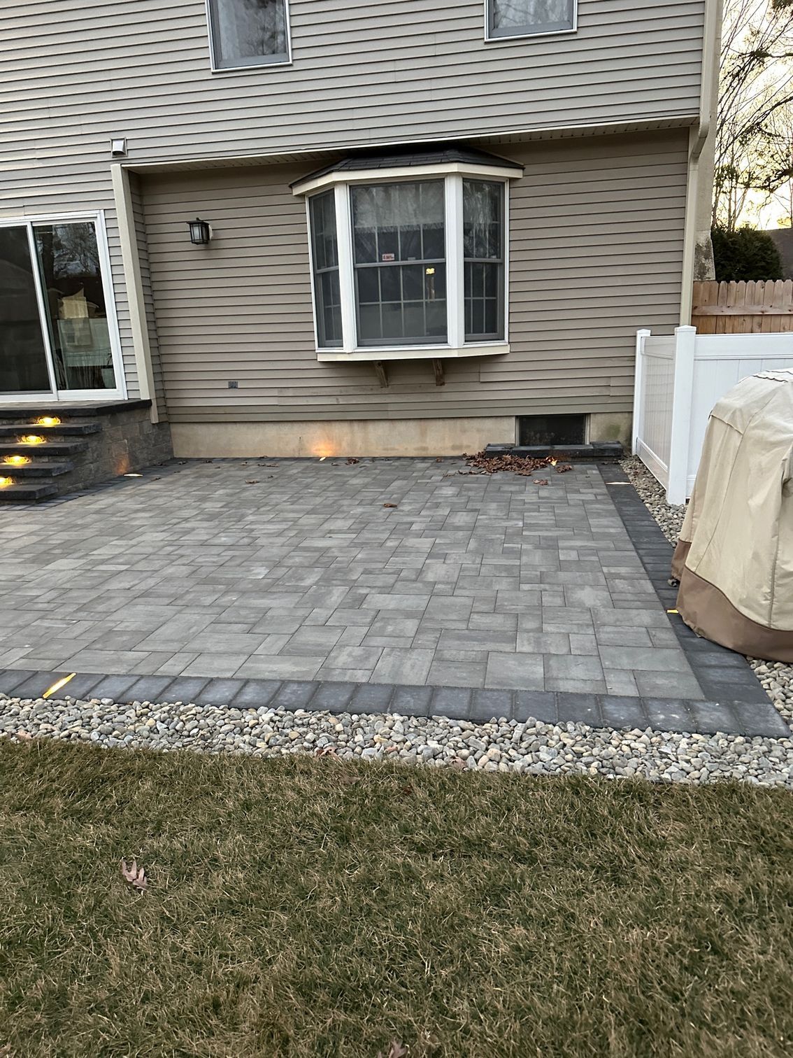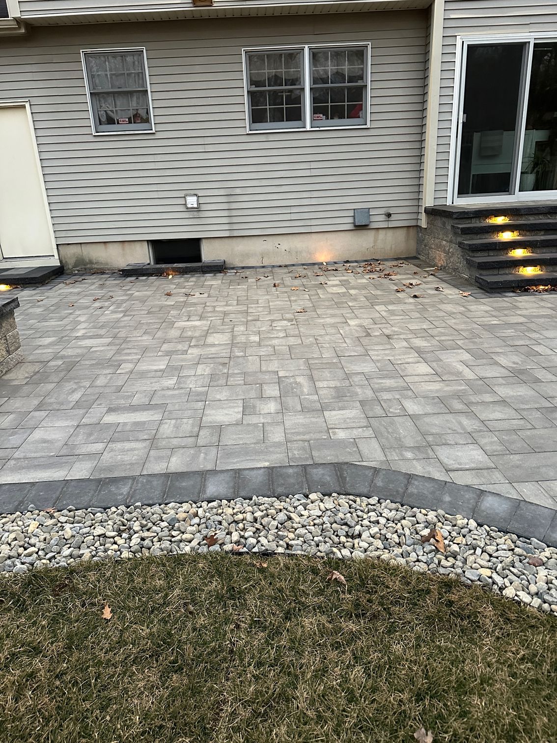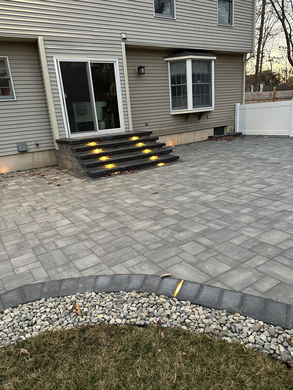 Beautiful outdoor paradise Paver patio LED Lights, Sod firepit and outdoor kitchen