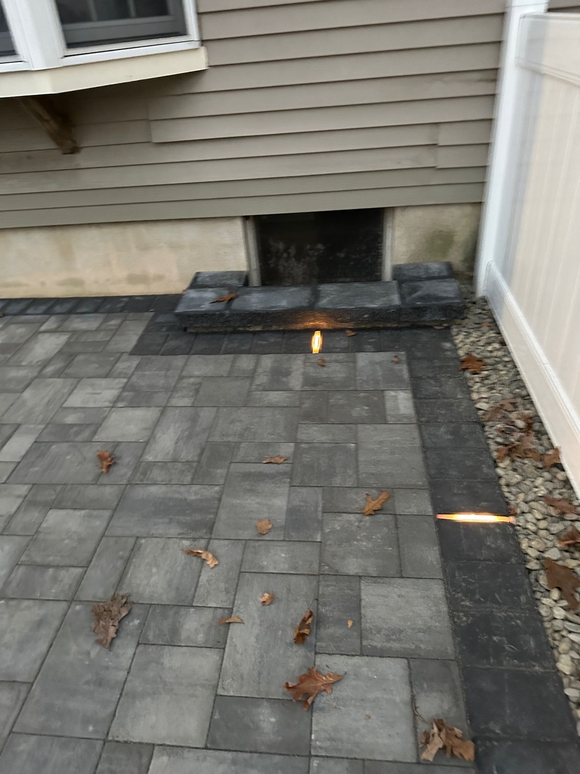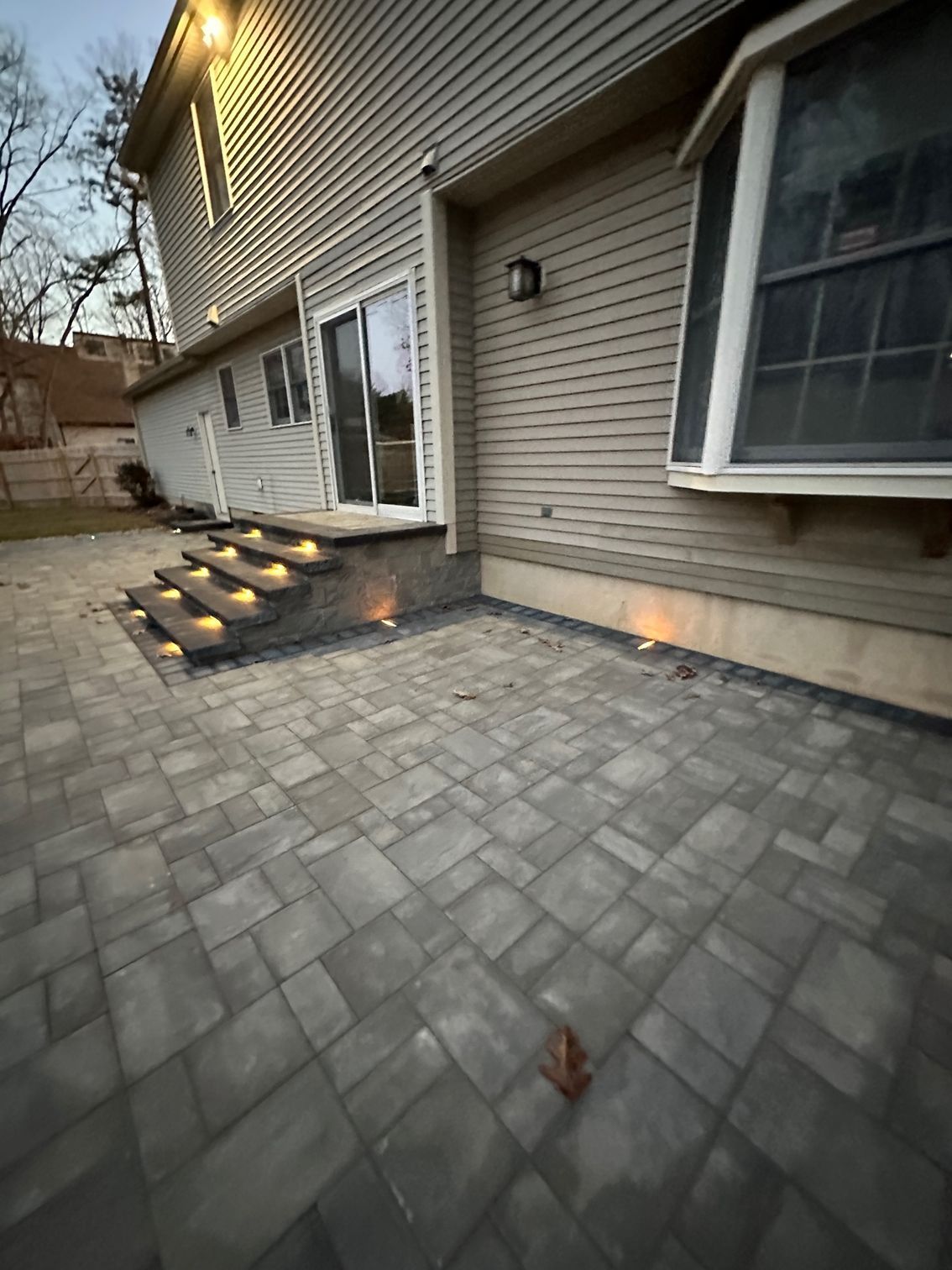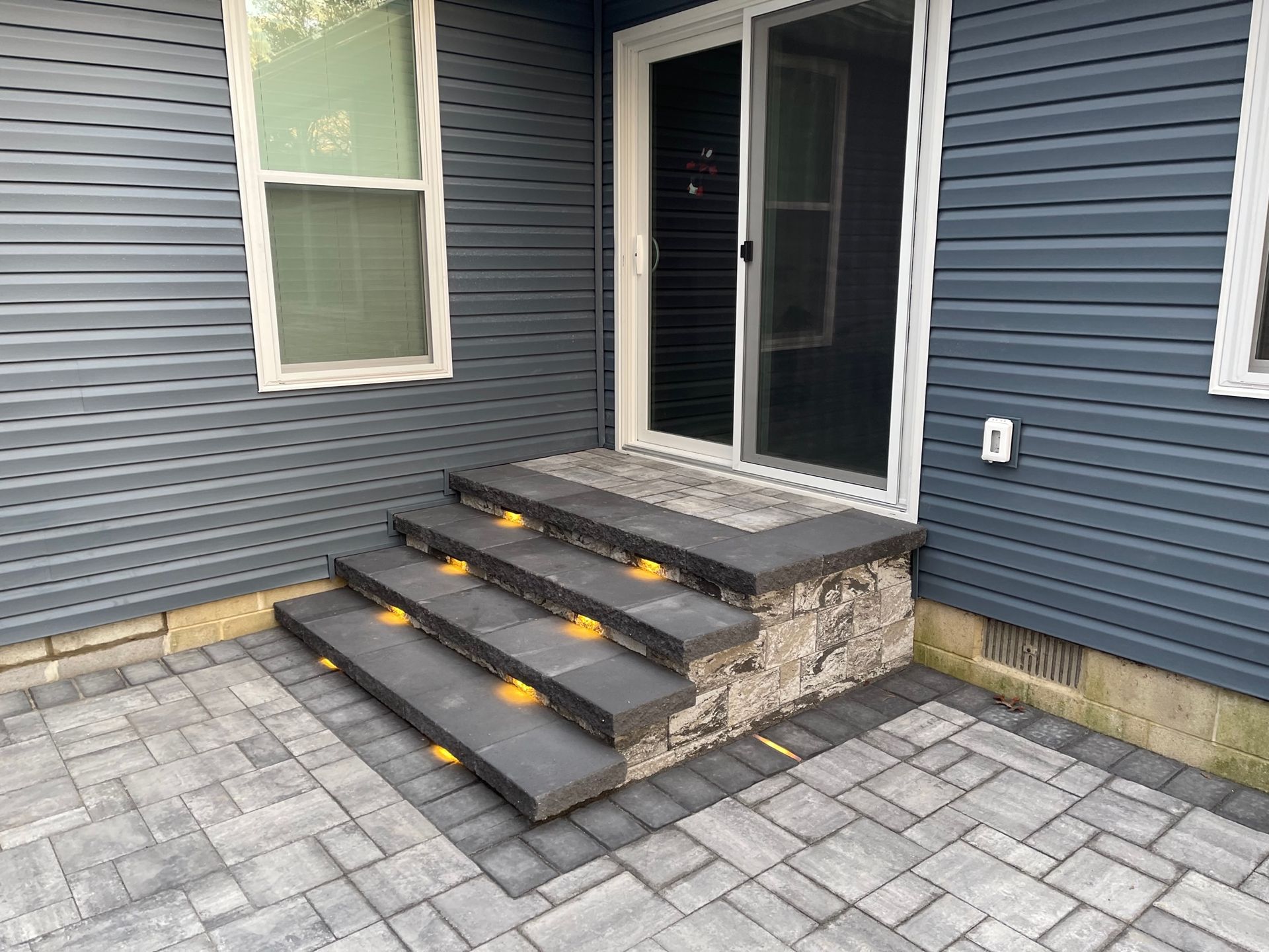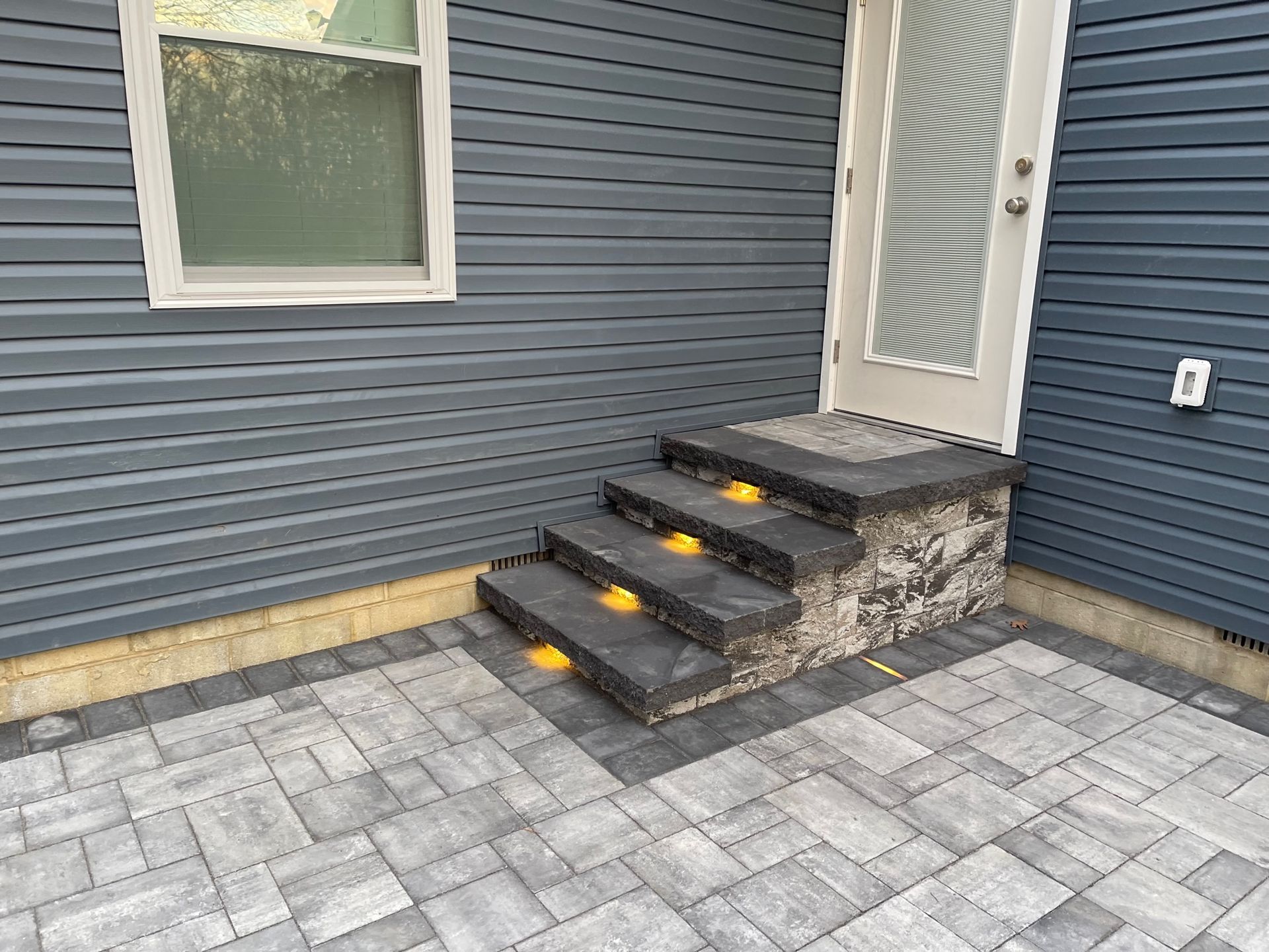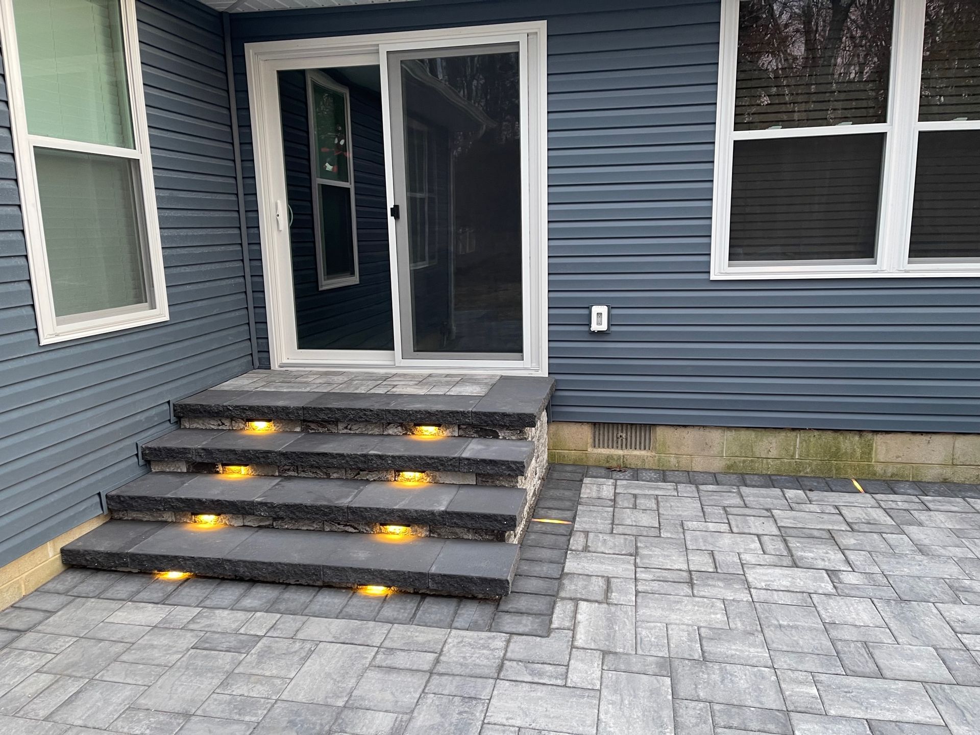 Beautiful outdoor paradise Paver patio LED Lights, Sod firepit and outdoor kitchen