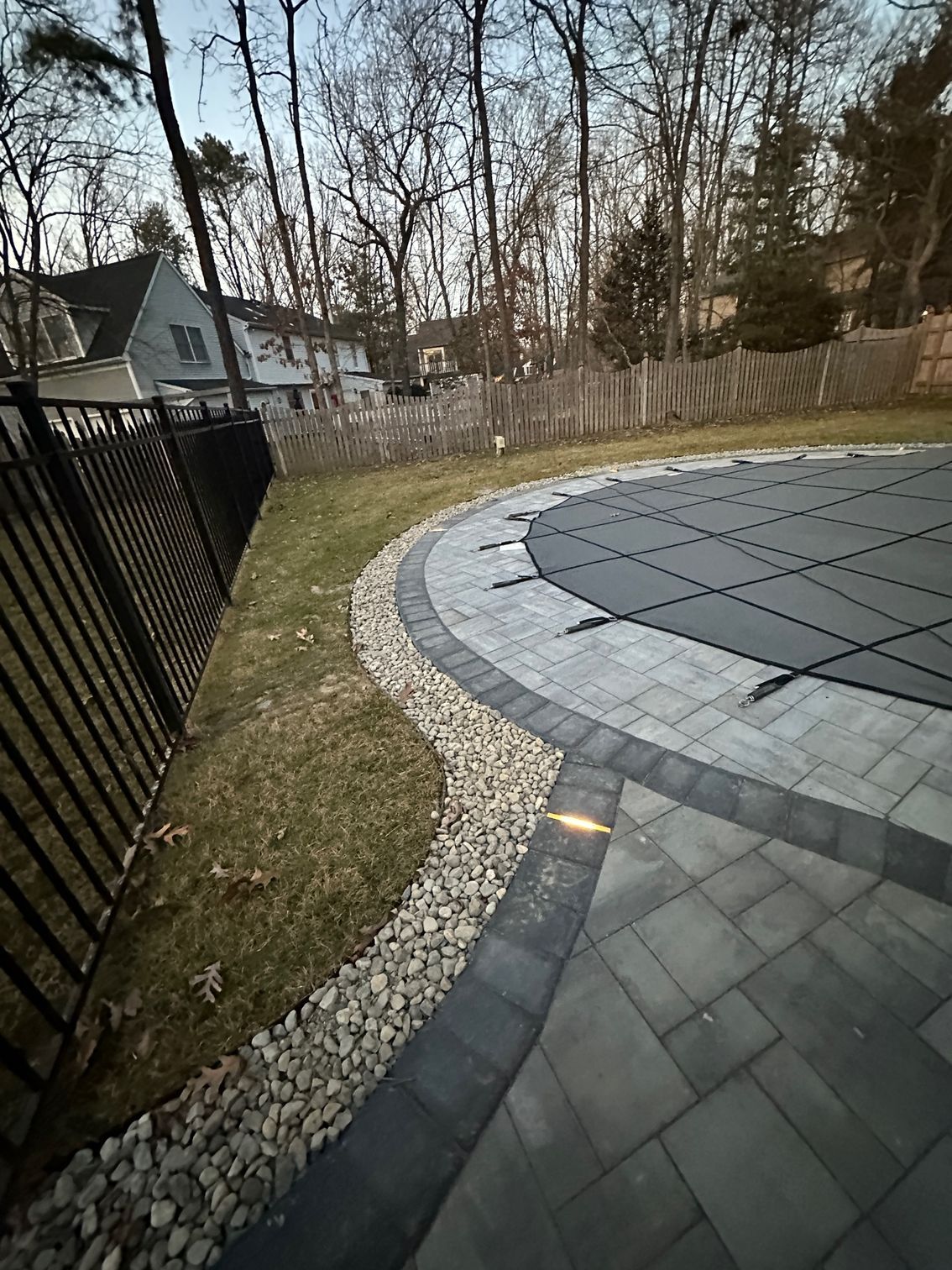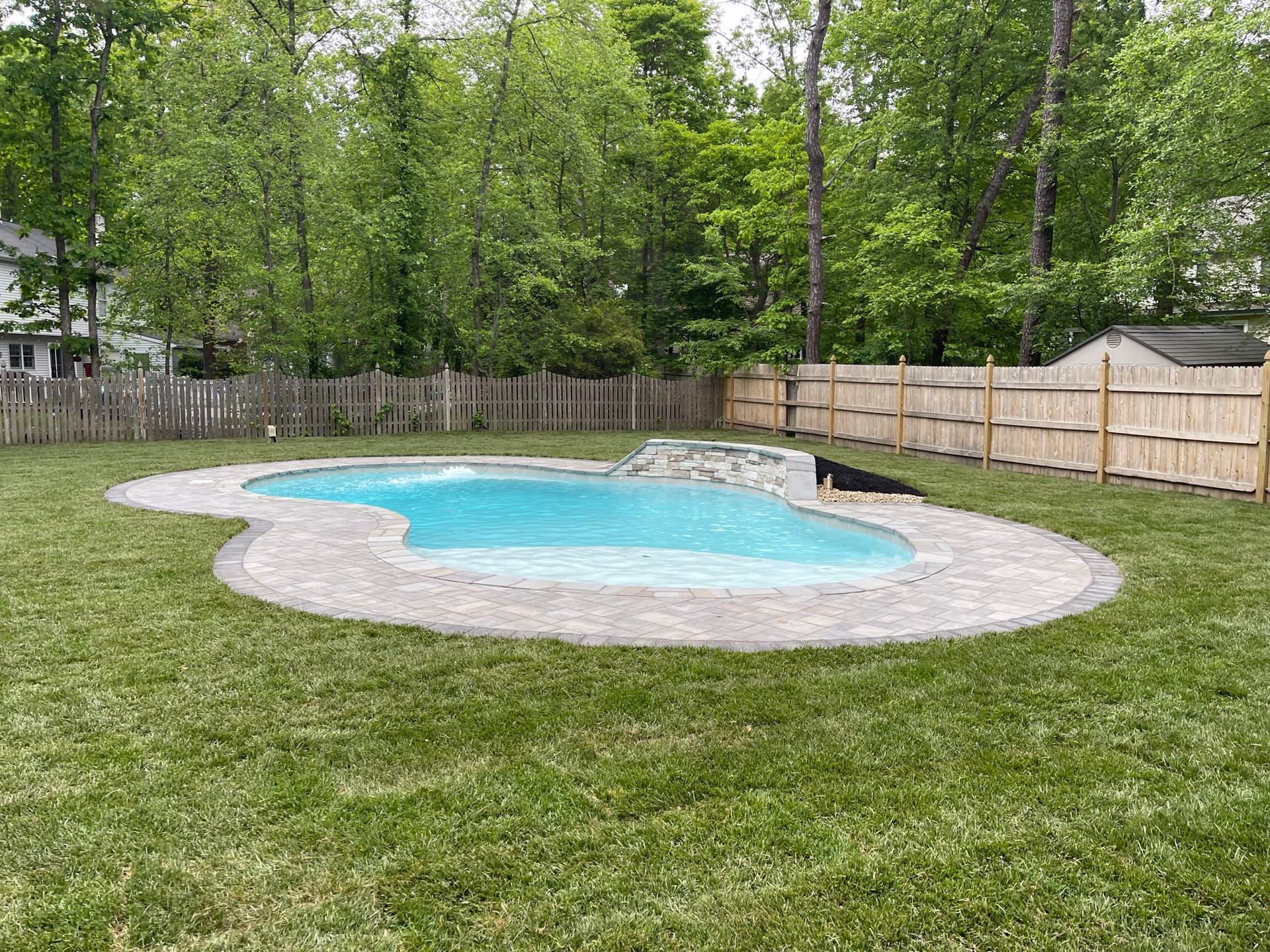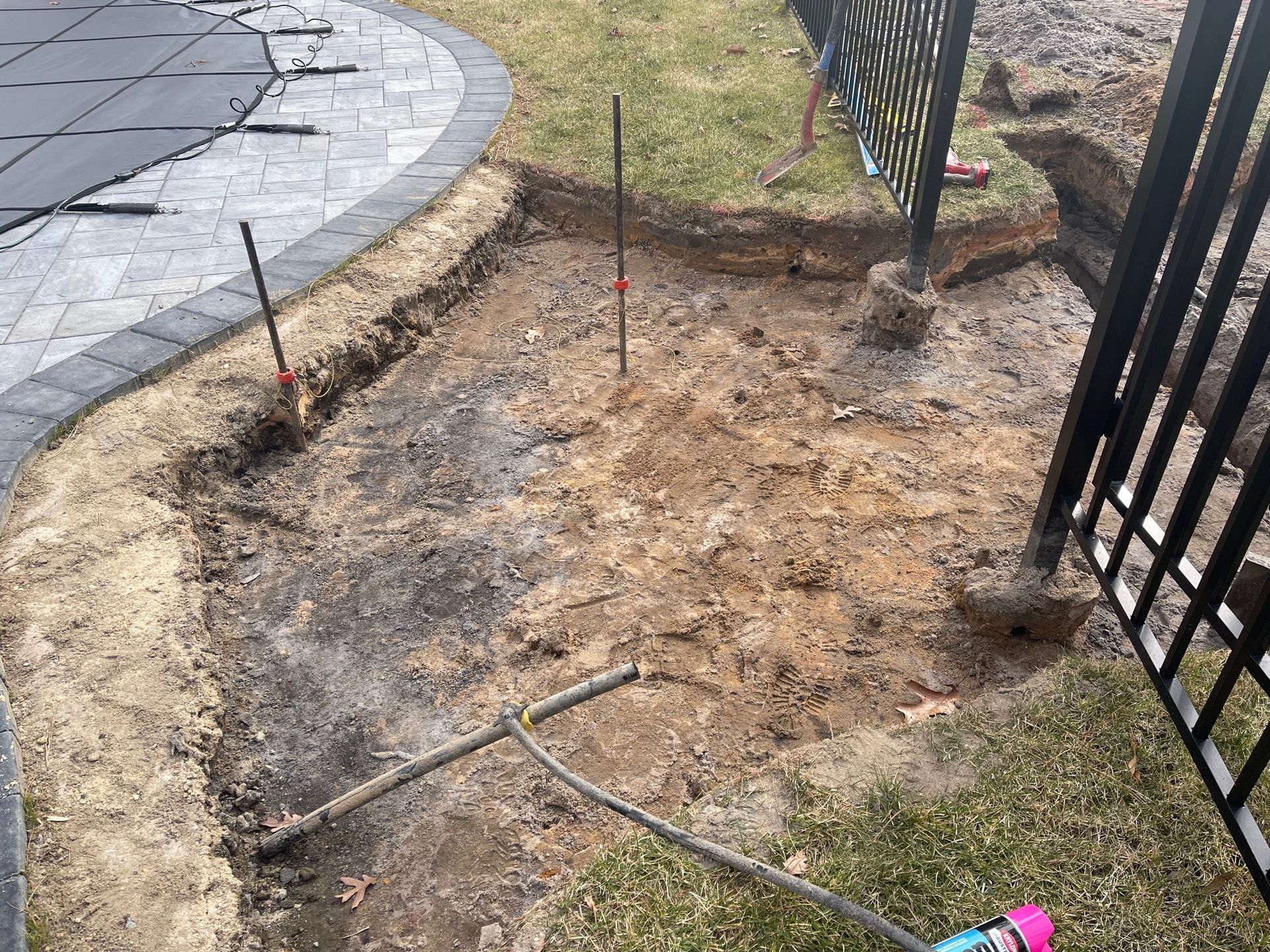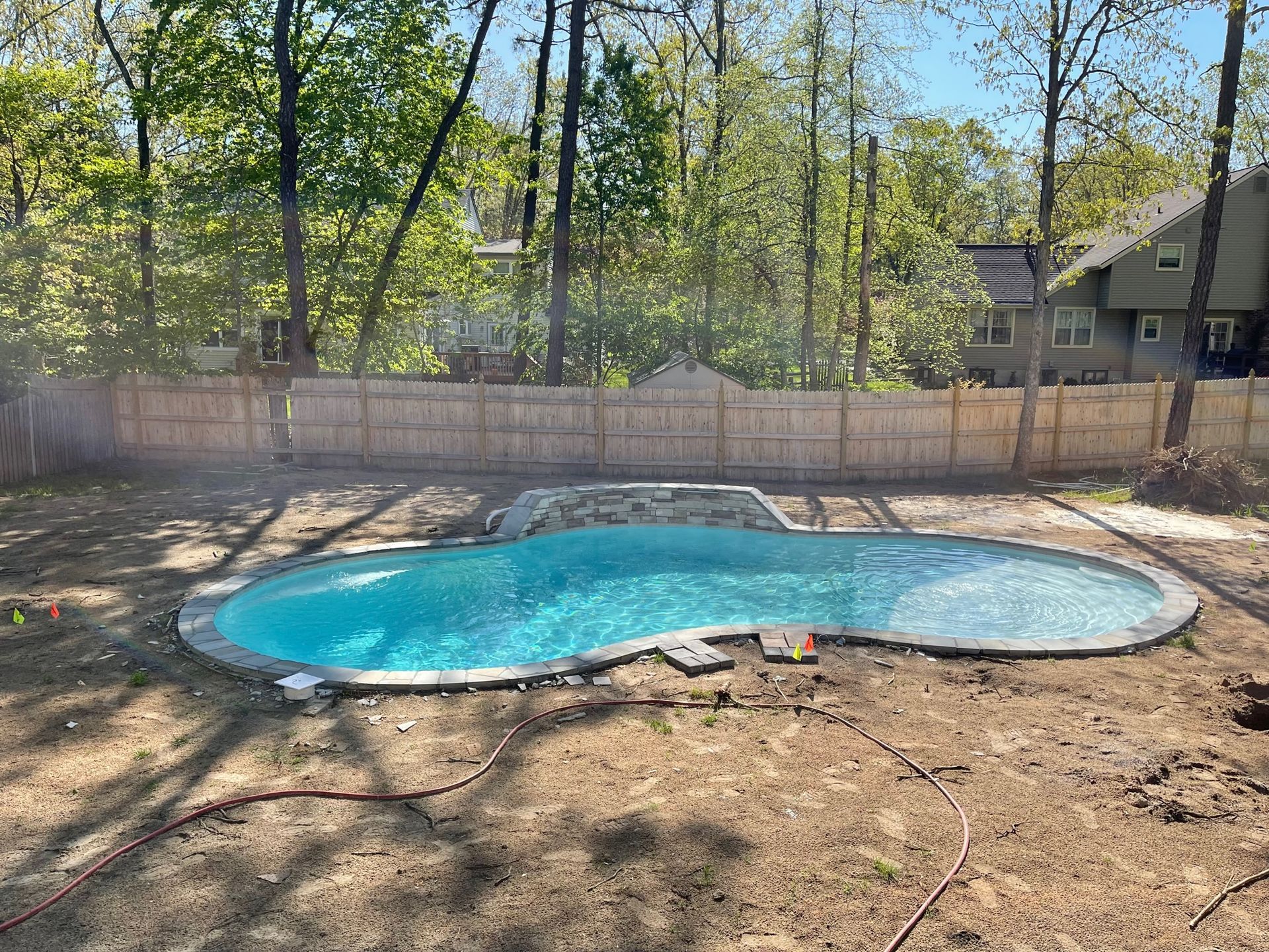 Phase 1 6/22 Pool surround and sod. Phase 2 20 x 30 patio, L-shaped seating wall, fire pit and LED lighting to top it off.