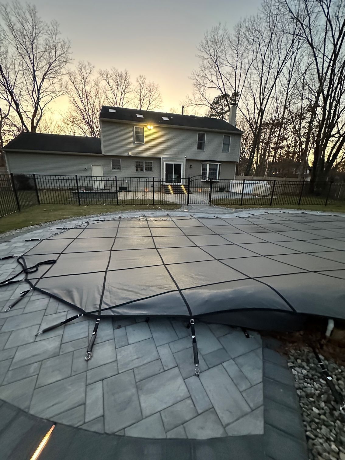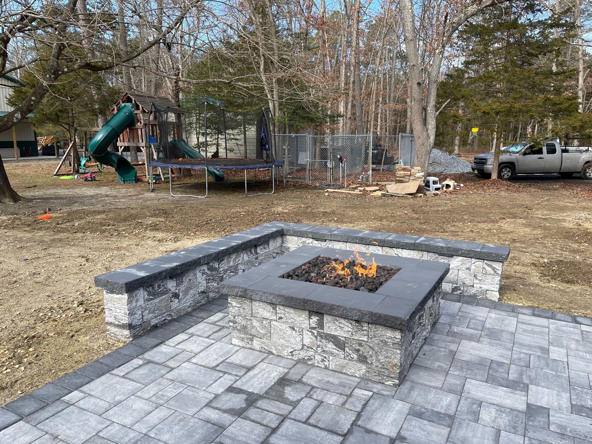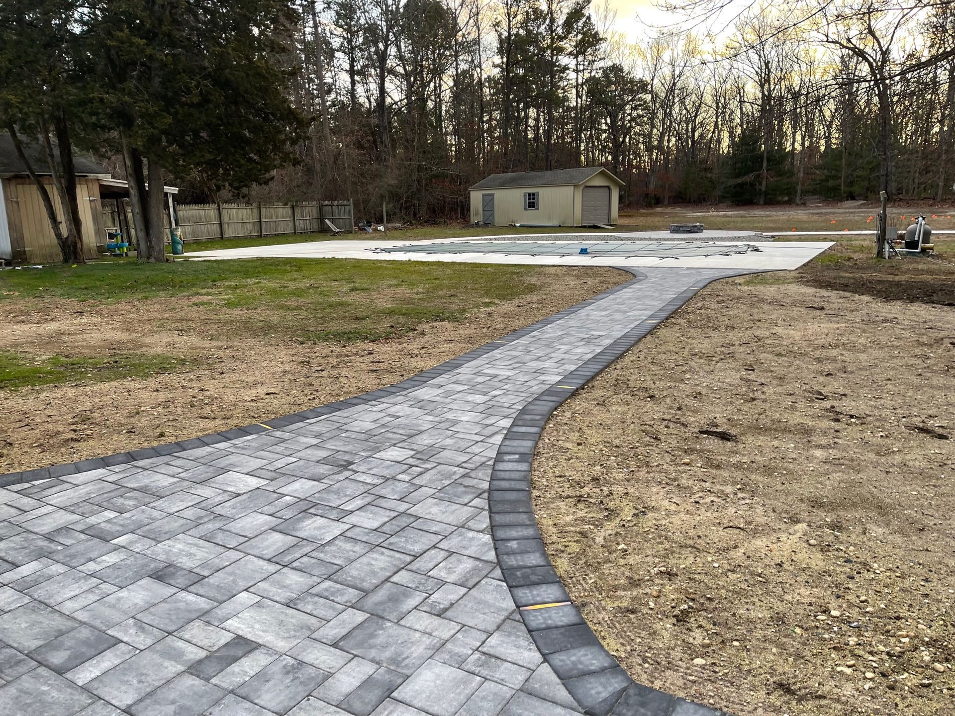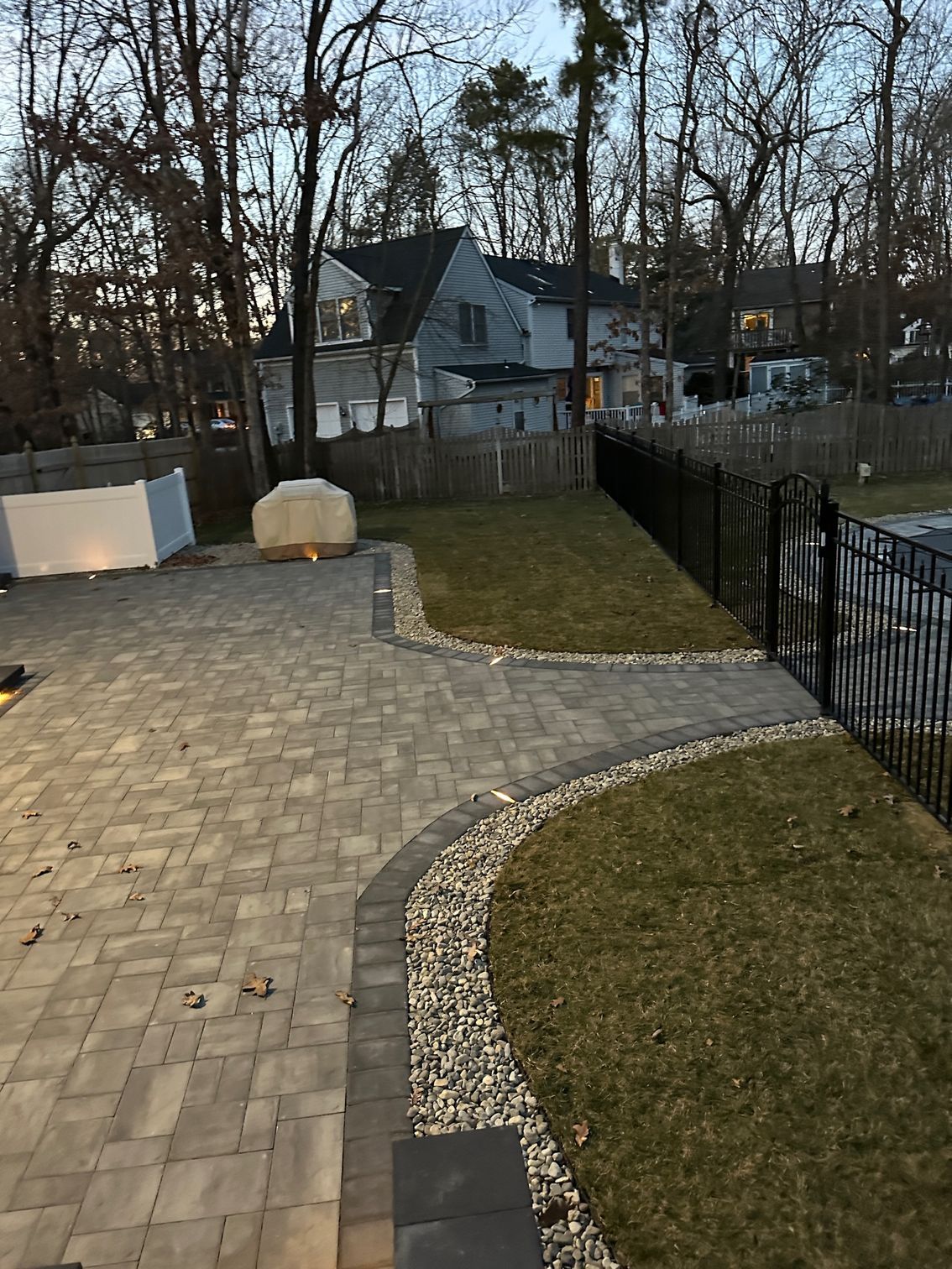 Phase 1 6/22 Pool surround and sod. Phase 2 20 x 30 patio, L-shaped seating wall, fire pit and LED lighting to top it off.